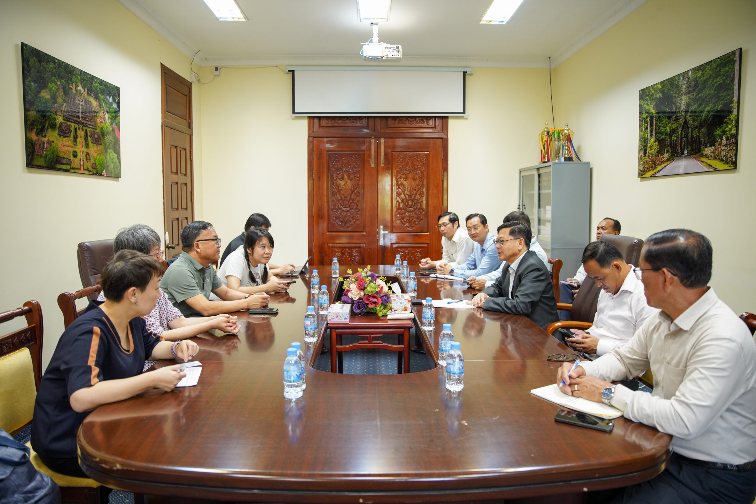 On the morning of October 22, 2024, H.E. Dr. Hang Peou, the Director-General of the APSARA National Authority, held a significant meeting with Mr. DU Haijiang, the Deputy Director of the Palace Museum of China, at the APSARA National Authority headquarters.