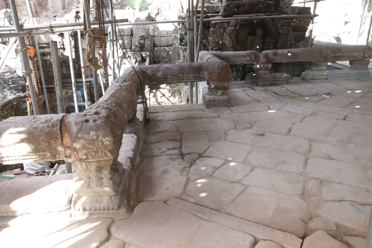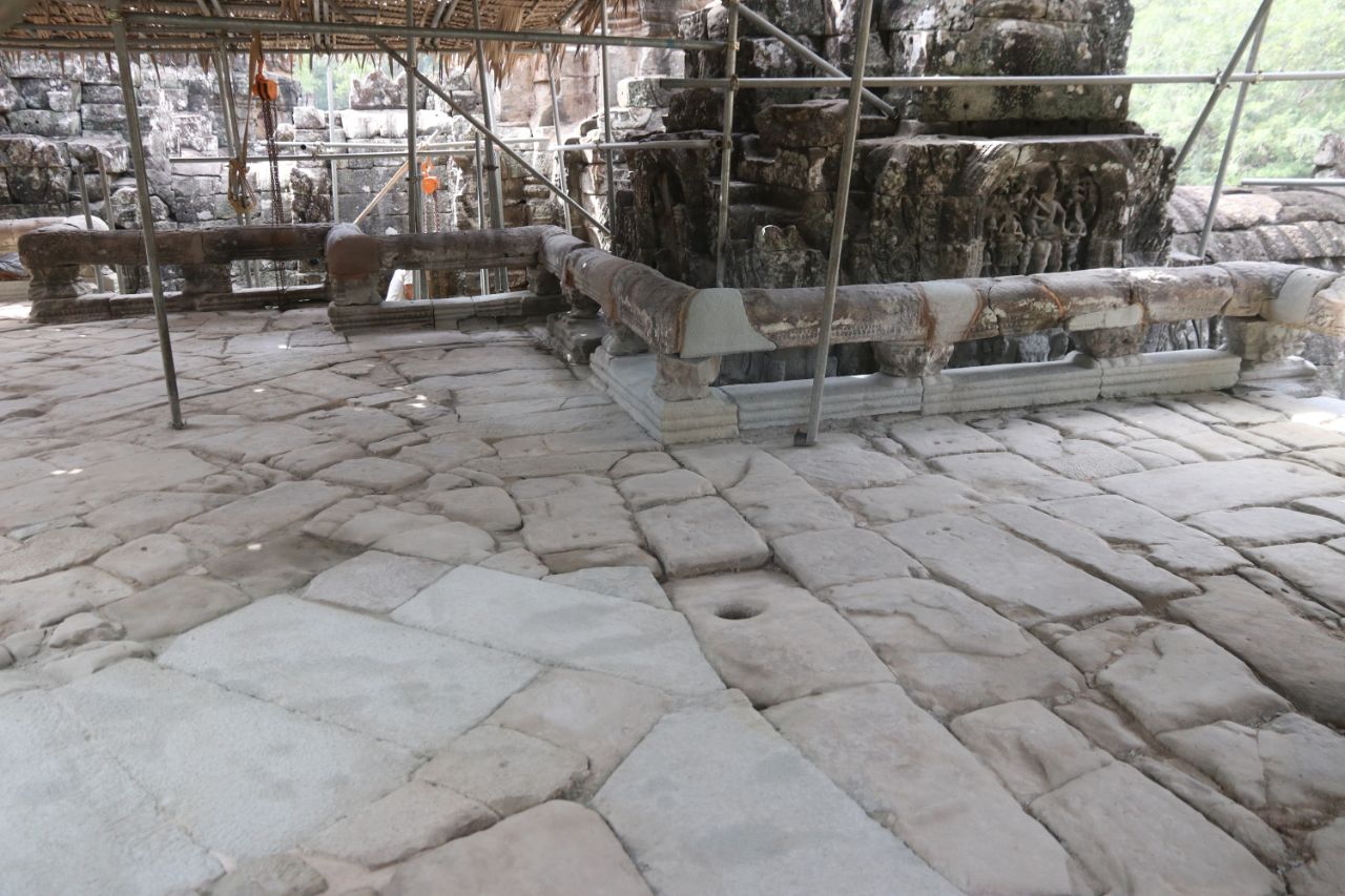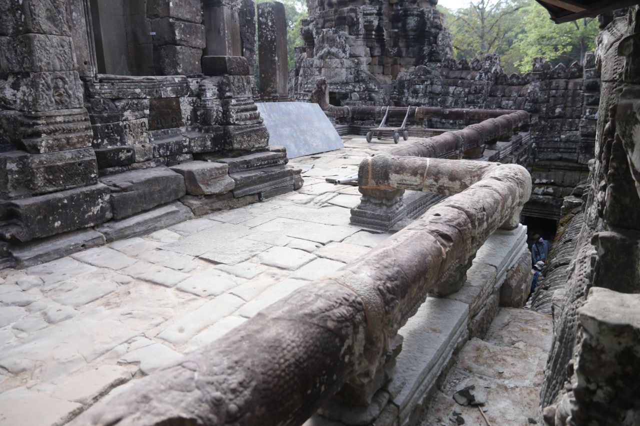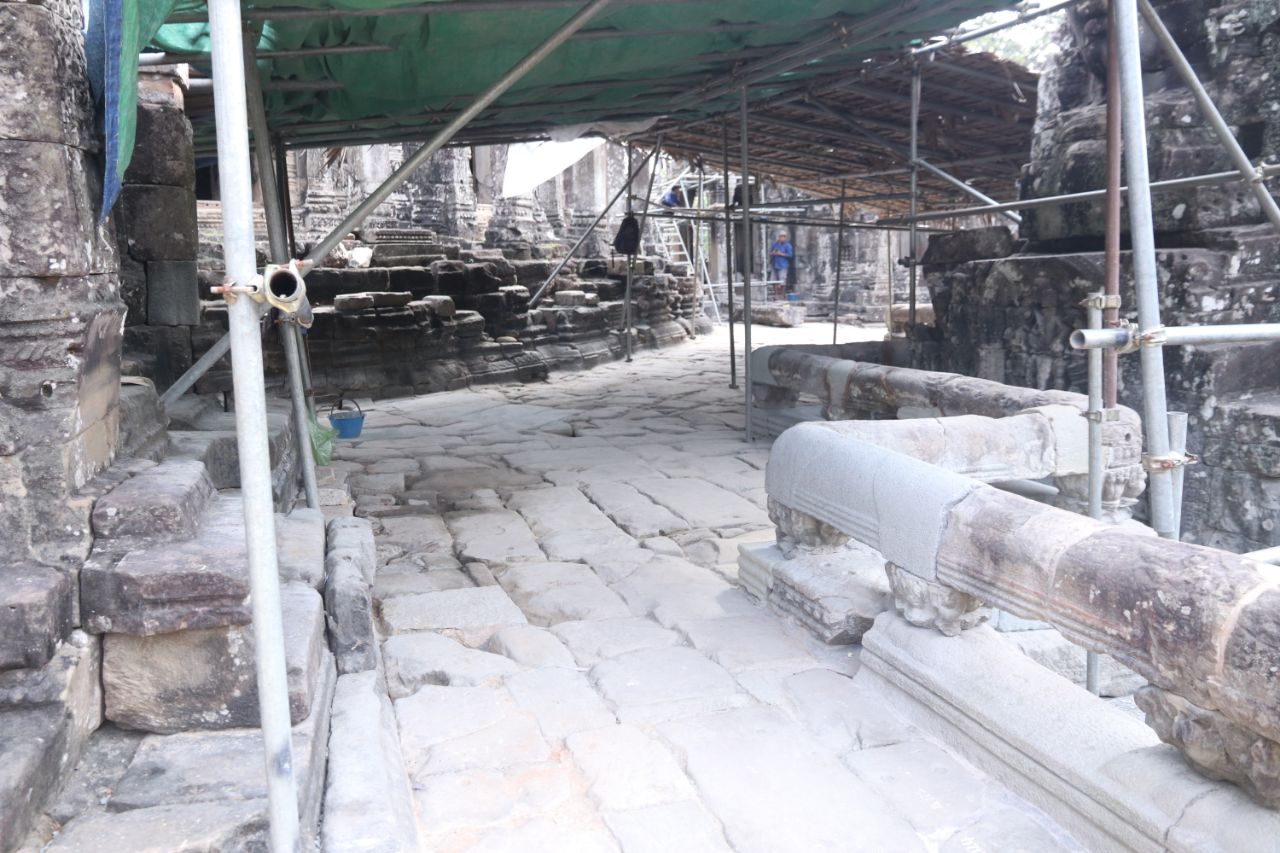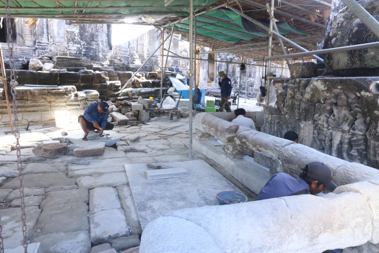 The APSARA National Authority has successfully completed a restoration project on the third terrace at the southwest corner of Bayon Temple after more than four months of work. Led by architect Ms. Meng Sovanlylin, the restoration team focused on repairing the damaged Naga balustrades, beams, and stone floors.