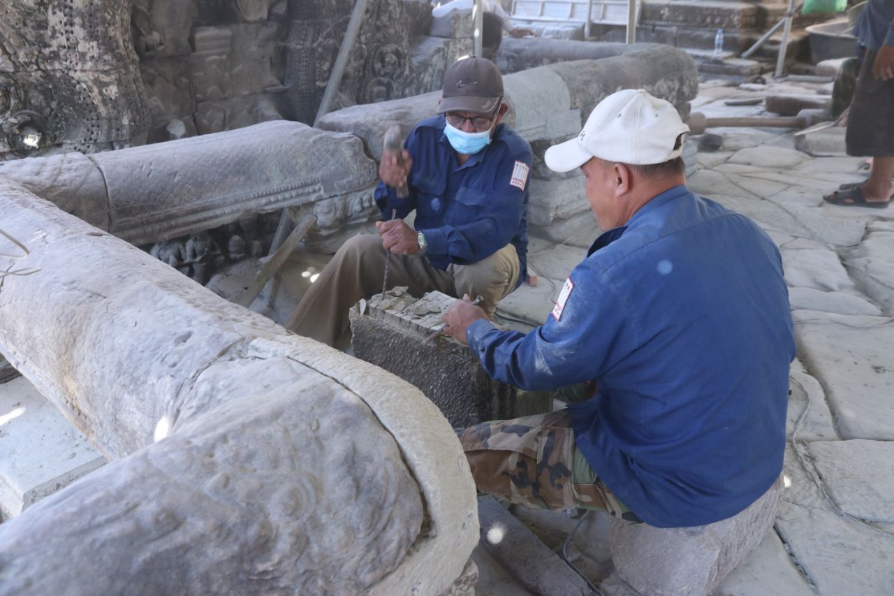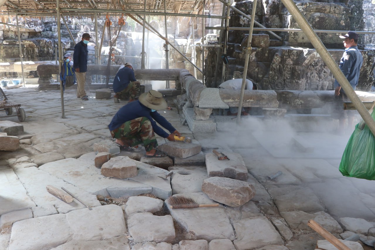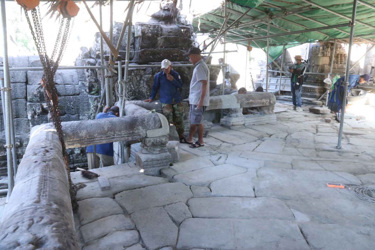 ក្រុមអ្នកជំនាញរបស់អាជ្ញាធរជាតិអប្សរា ដែលអនុវត្តគម្រោងជួសជុលរួតទី៣ នៅជ្រុងនិរតីនៃប្រាសាទបាយ័ន ដោយប្រើរយៈពេលជាង៤ខែ បញ្ចប់ដោយជោគជ័យ។
