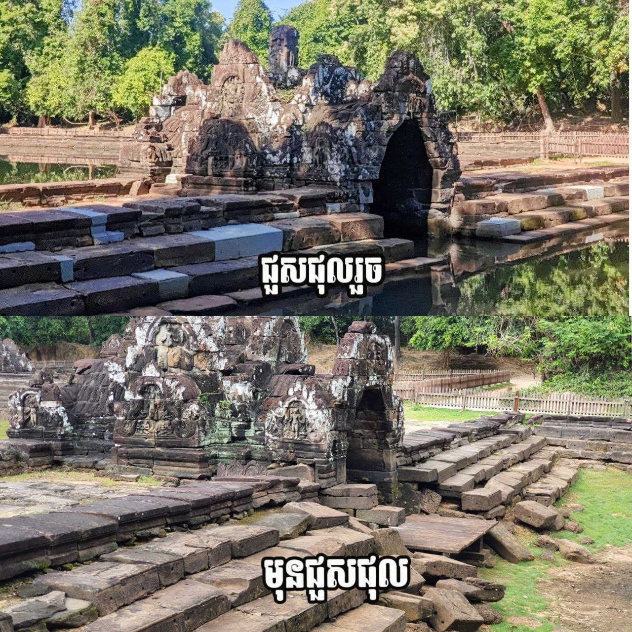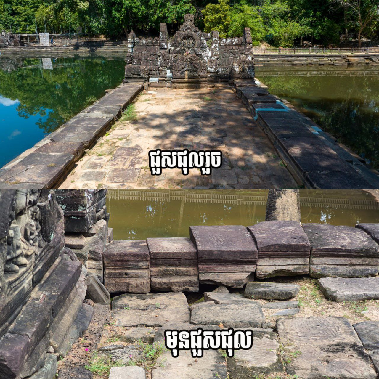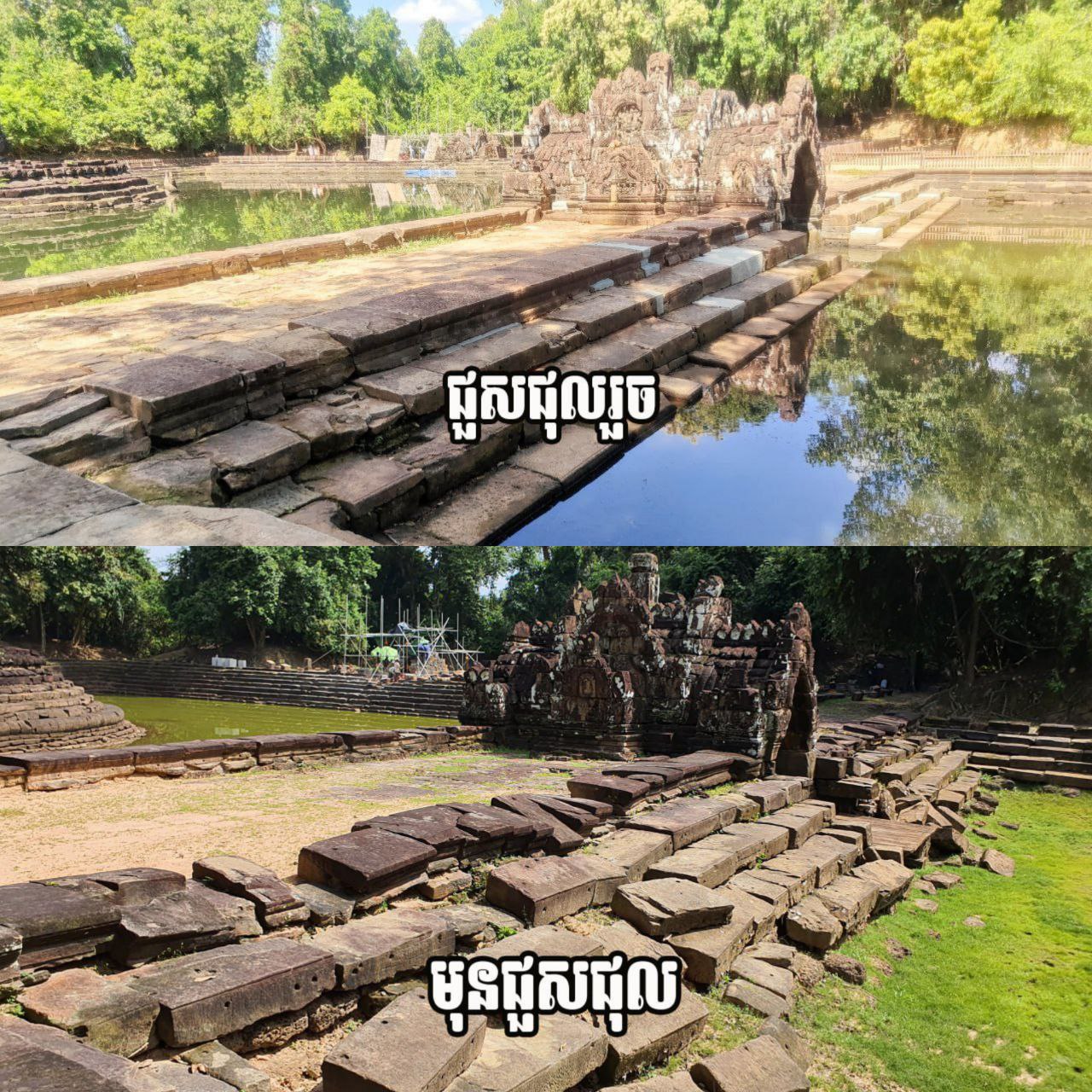 The APSARA National Authority has successfully completed the restoration of the western drainage structure at Neak Poan Temple. The restoration team, part of the Department of Conservation of Monuments and Preventive Archaeology, has transformed the previously damaged structure into a strong and aesthetically pleasing feature.