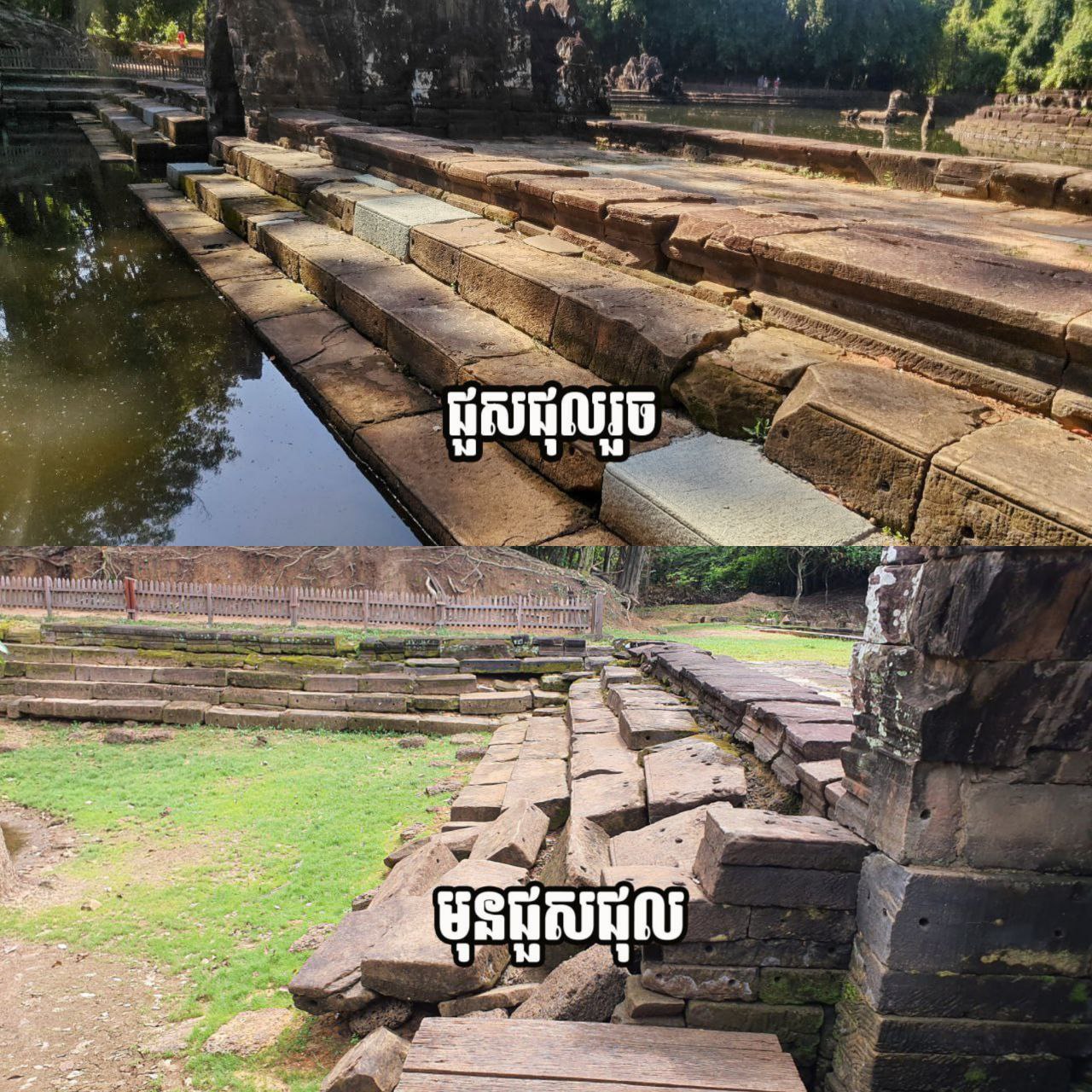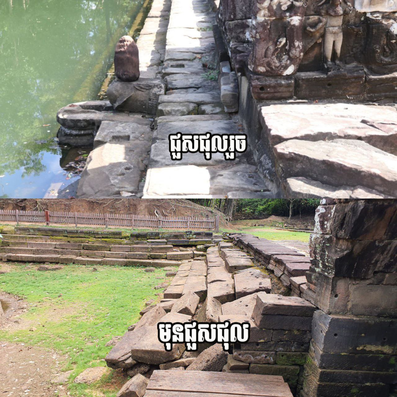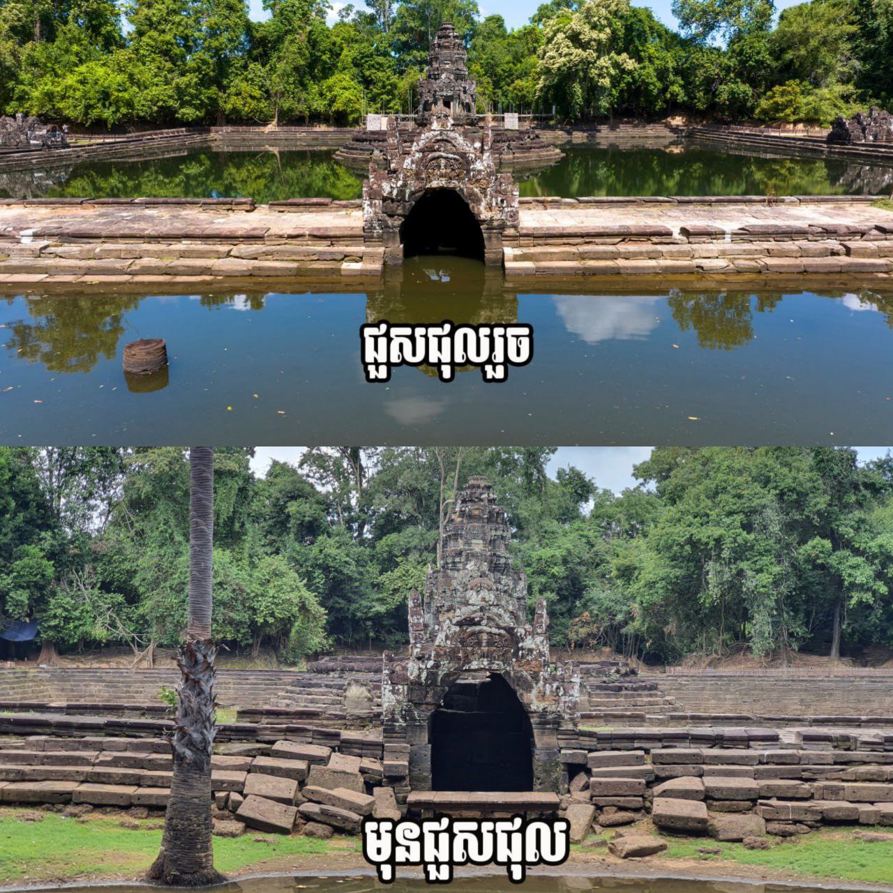 The APSARA National Authority has successfully completed the restoration of the western drainage structure at Neak Poan Temple. The restoration team, part of the Department of Conservation of Monuments and Preventive Archaeology, has transformed the previously damaged structure into a strong and aesthetically pleasing feature.
