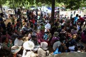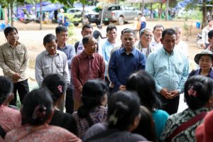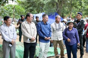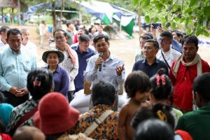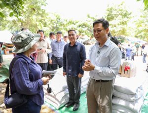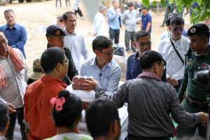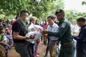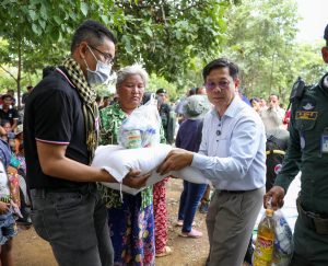During the visit, H.E. Dr. Hang Peou distributed food support, and medicine to each displaced family. He offered words of encouragement and solidarity, acknowledging the hardships faced by the residents due to the recent Thai invasion along the Cambodian-Thai border, which forced many to flee for safety over several days.