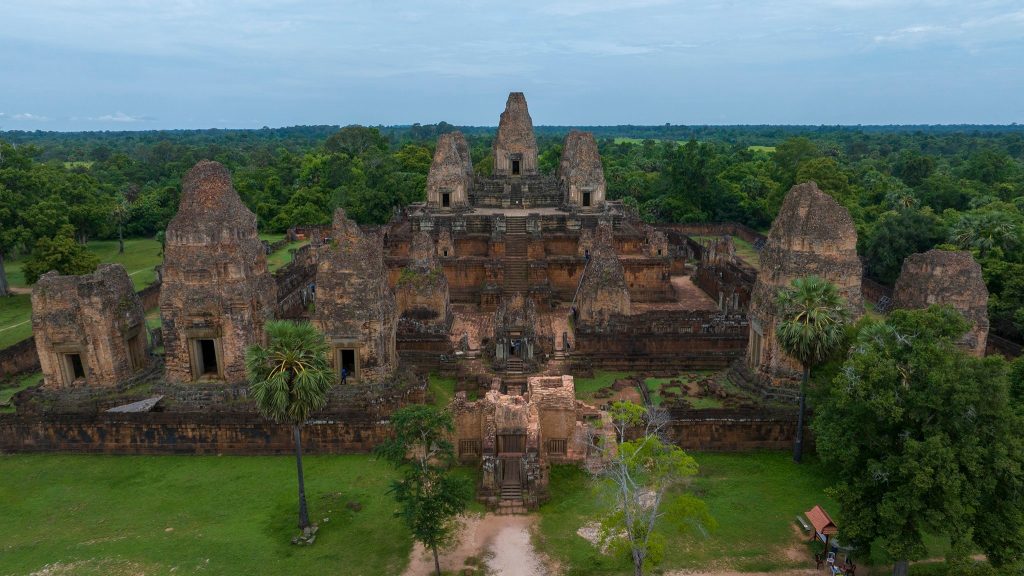 ប្រាសាទព្រះខ័ន ដ៏ស្រស់ត្រកាល ជាមួយស្ថាបត្យកម្មពិសេស ក្បាច់ចម្លាក់ប្រណិតអមដោយទេសភាពបៃតងខ្ចី នារដូវវស្សា