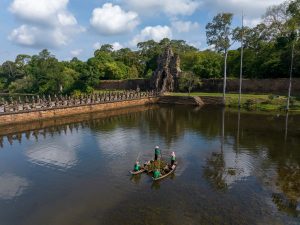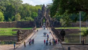 ការដែលចូលមកទស្សនាប្រាសាទអង្គរវត្ត ដើរចូលពីច្រកចូលទិសខាងលិច ទេសចរគ្រប់រូបនឹងអាចមើលឃើញនូវទិដ្ឋភាពនៃសំណង់ប្រាសាទអង្គរវត្តដែលជានិមិត្តរូបនៃព្រលឹងជាតិខ្មែរ លេចត្រដែតដ៏ស្គឹមស្កៃ លាយលំជាមួយធម្មជាតិ រុក្ខជាតិតូចធំនានា មានសោភ័ណភាពគ្មានគូប្រៀប។